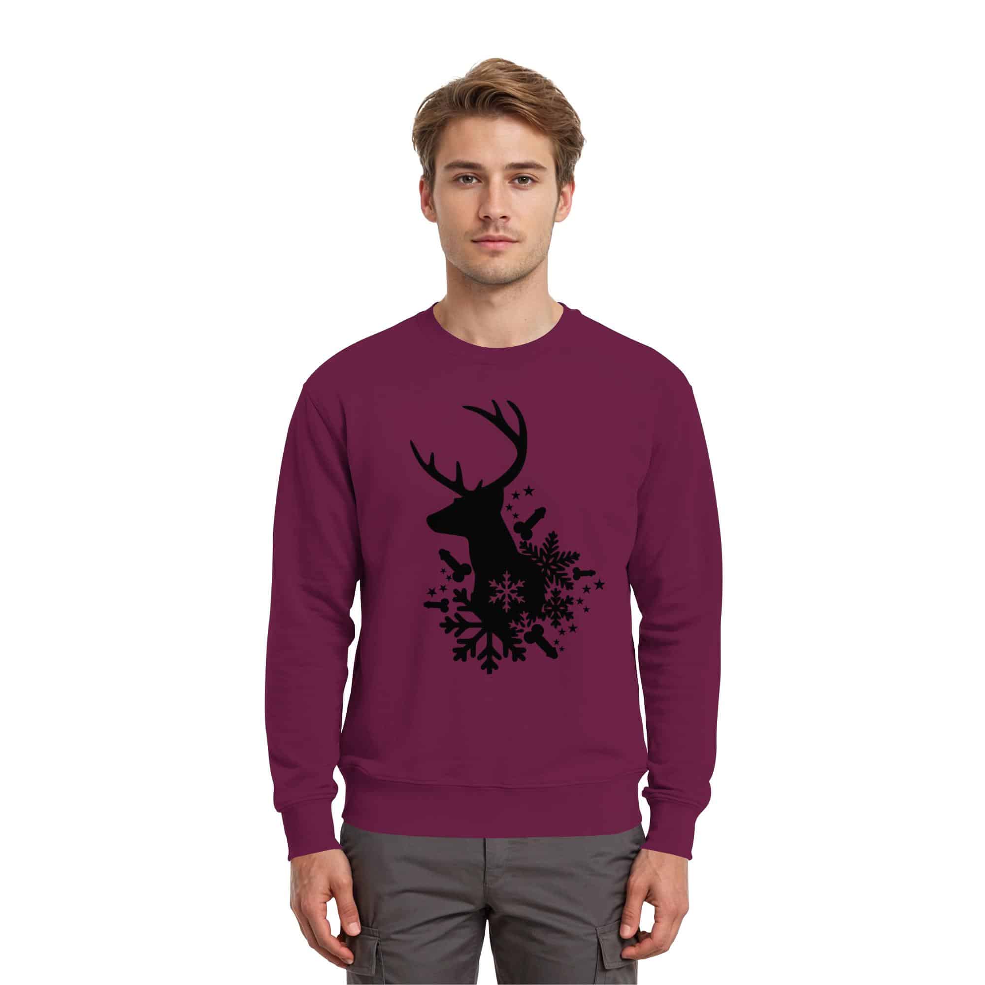 Umarmen Sie die Magie des Winters! Entdecken Sie das zeitlose Design des Hirsch Black Premium Sweatshirts, das Eleganz und Komfort vereint.