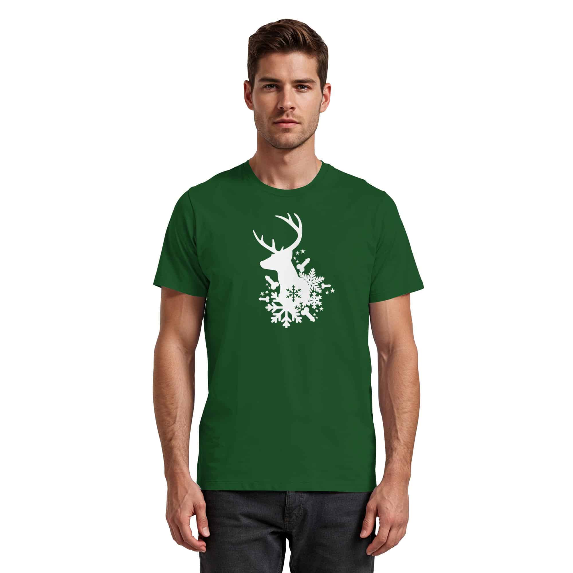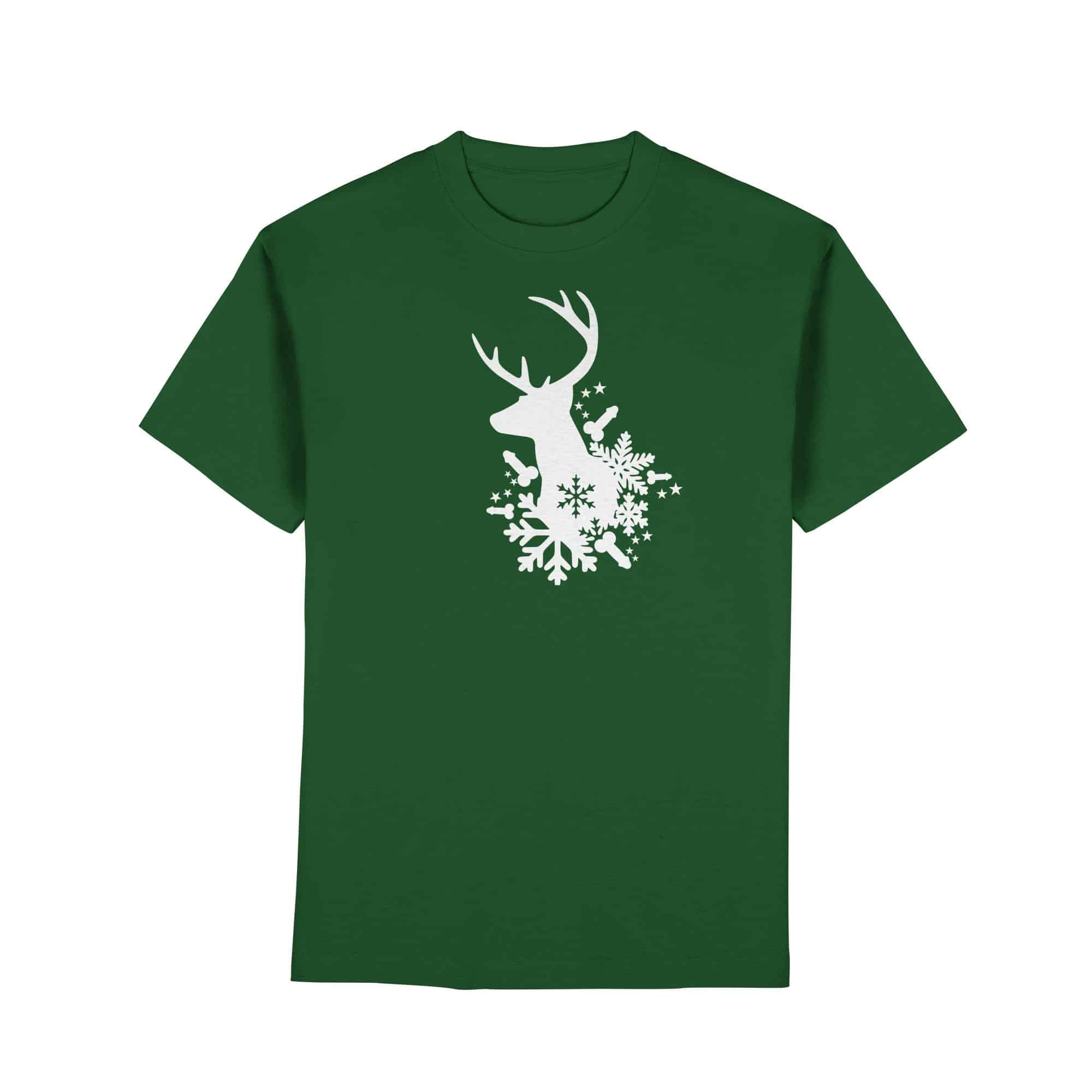 Erleben Sie die Magie des Winters mit unserem Hirsch Weiß – Premium Classic T-Shirt. Das elegante Hirschmotiv, umgeben von zarten Schneeflocken und funkelnden Sternen, entfacht eine warme Winterstimmung.