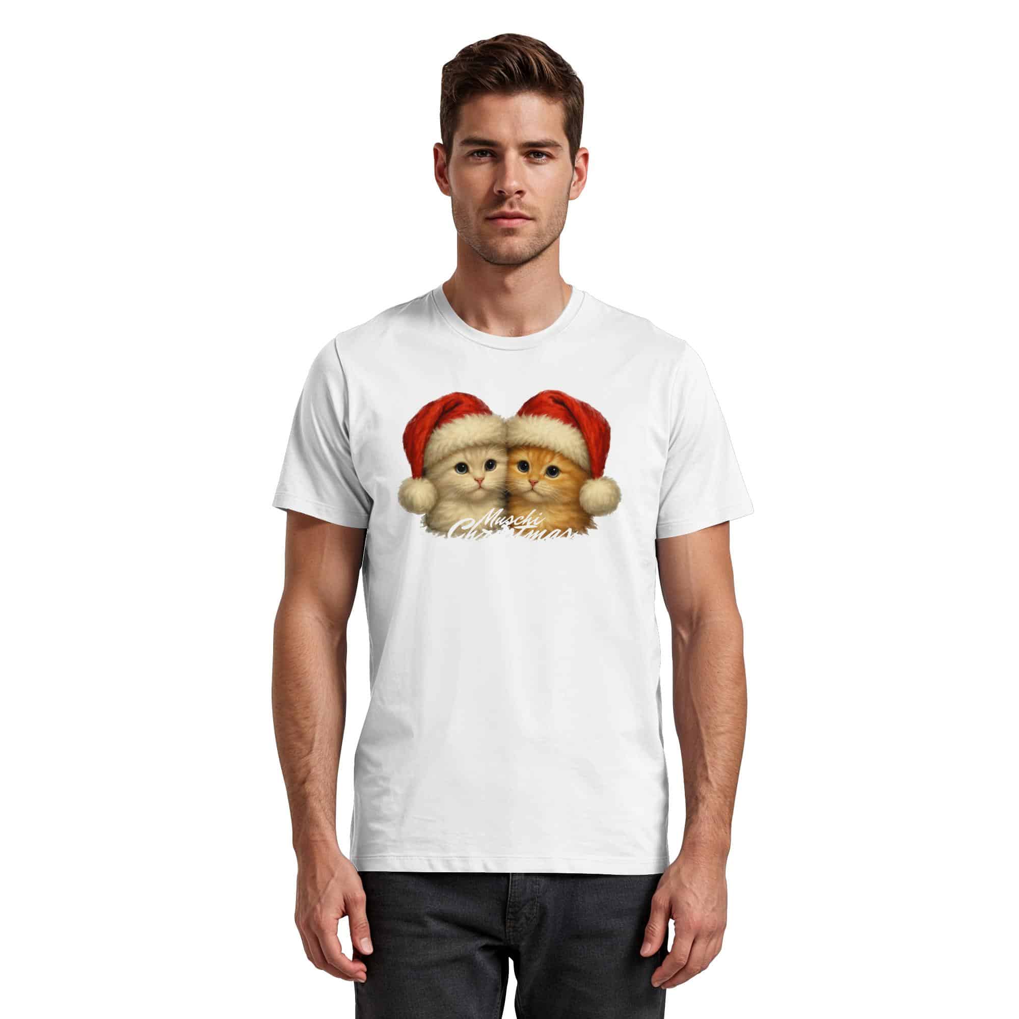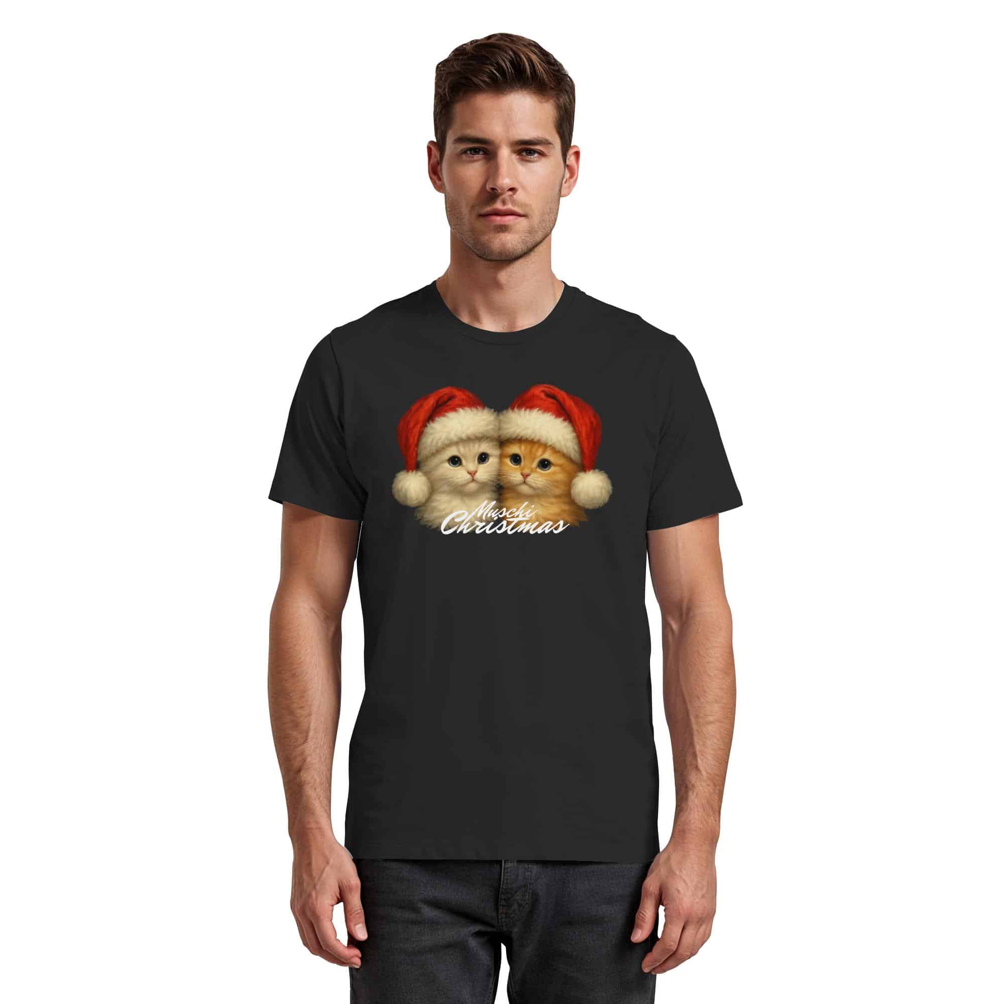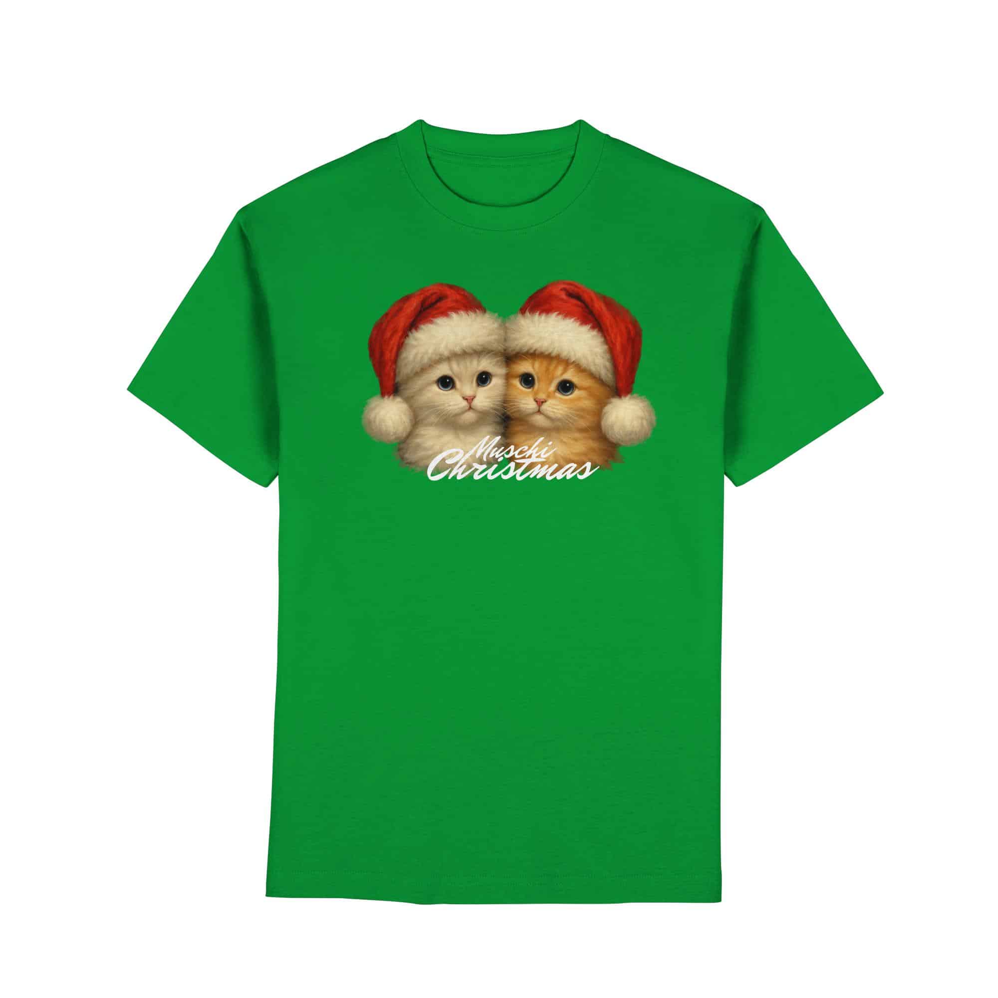Erlebe die Magie der Feiertage mit unserem Muschi Christmas Premium Classic T-Shirt. Zwei süße Kätzchen, geschmückt mit festlichen Weihnachtsmützen, strahlen Wärme und Freude aus und wecken Kindheitserinnerungen an gemütliche Winterabende.