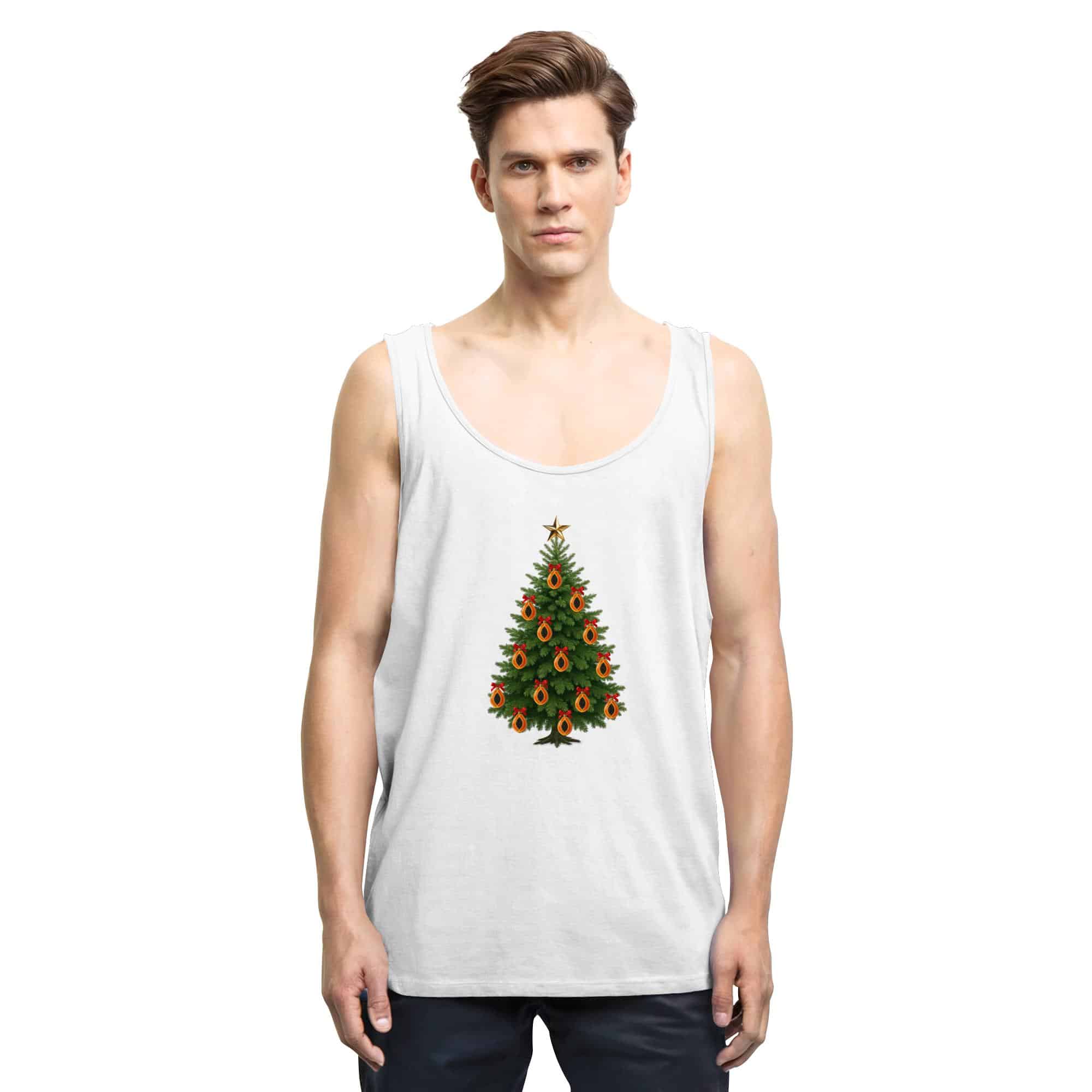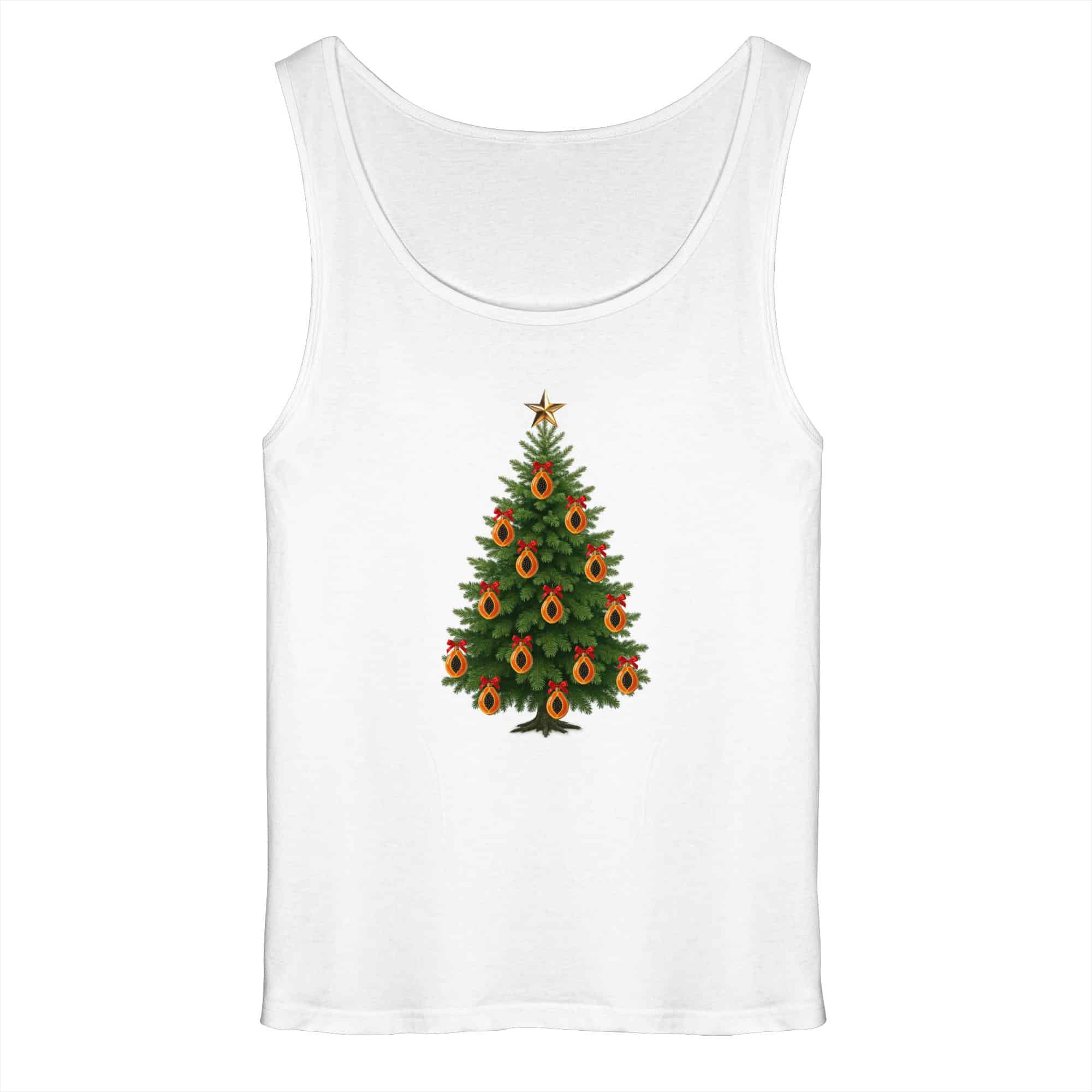 Das Tank Top besticht durch ein auffälliges Papaya-Motiv, das mit roten Schleifen verziert ist und an einen festlichen Baum erinnert. Diese harmonische Verbindung von Natur und Festlichkeit bringt Freude und Gelassenheit in deinen Alltag.